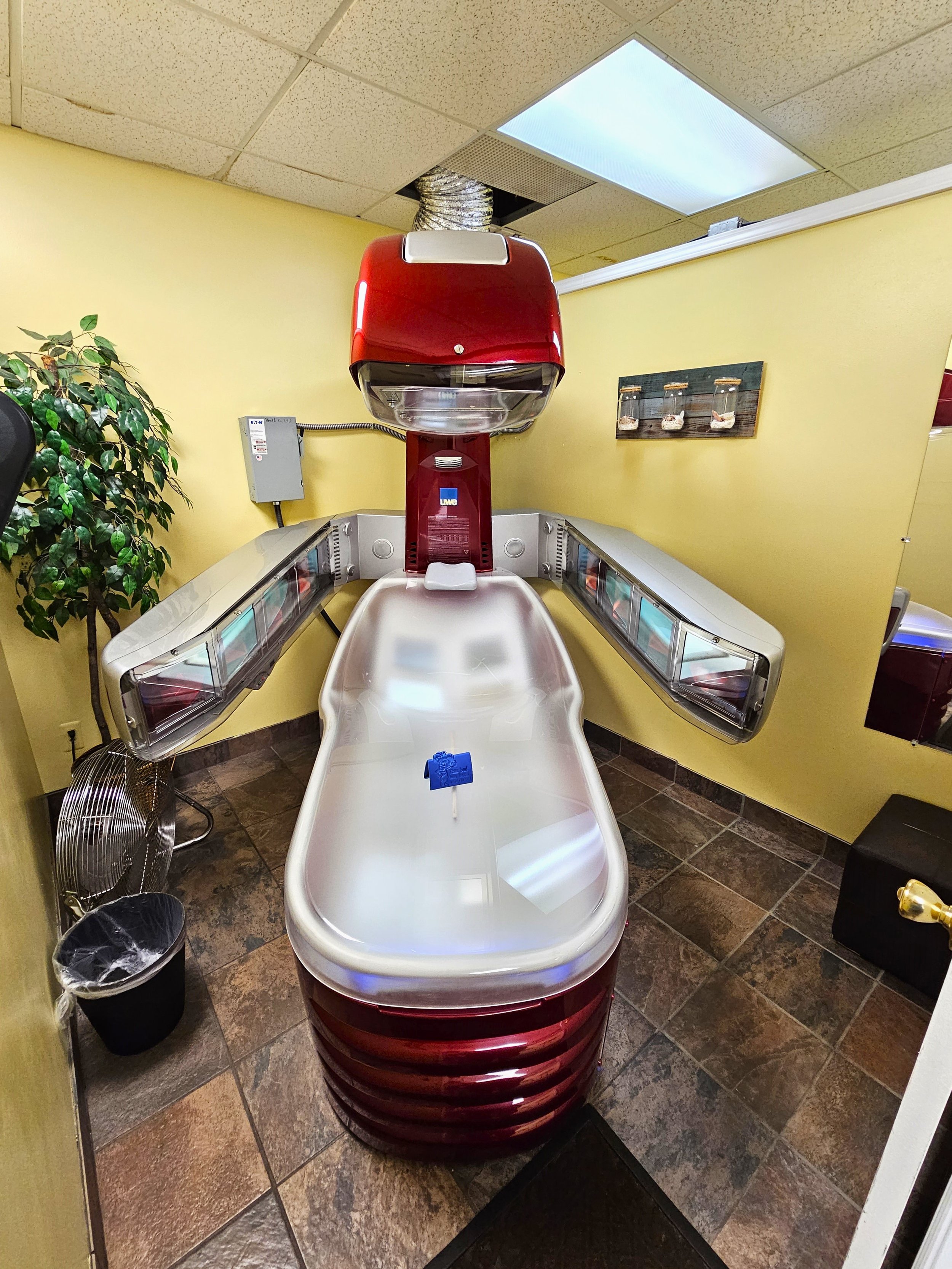 Premium, high pressure, level 6 bed. It is designed for fast, deep, and long lasting color. Utilizing 28 to 33+ high-pressure quartz lamps, these filter out about 95% of UVB "burning" rays, making it ideal for sensitive skin and limiting risk of burning.